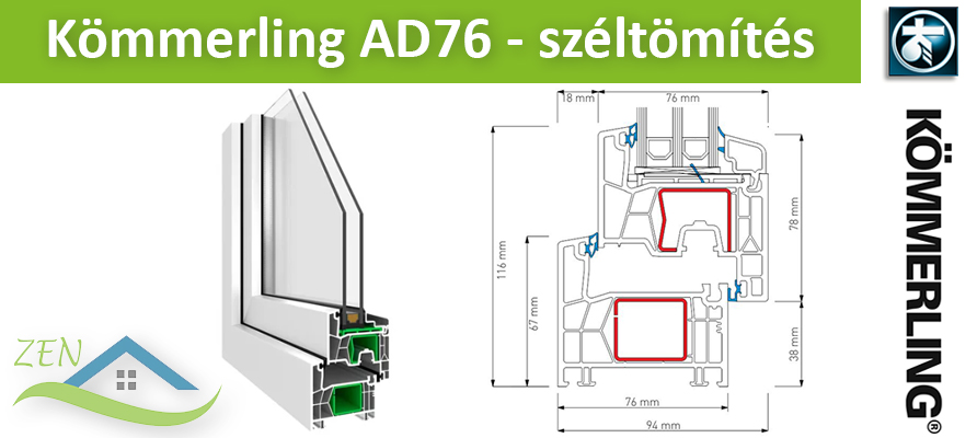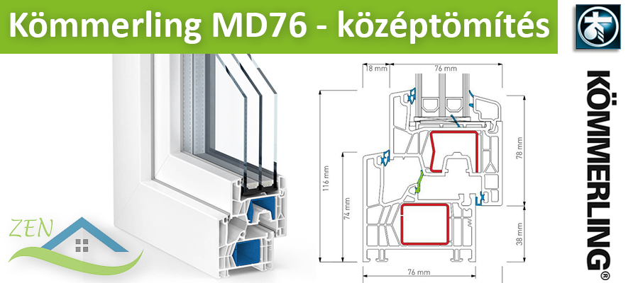 - Kömmerling AD76 | 3 rétegű – 48 mm üveg | MP távtartó | Uw: 0.78 W/m2K