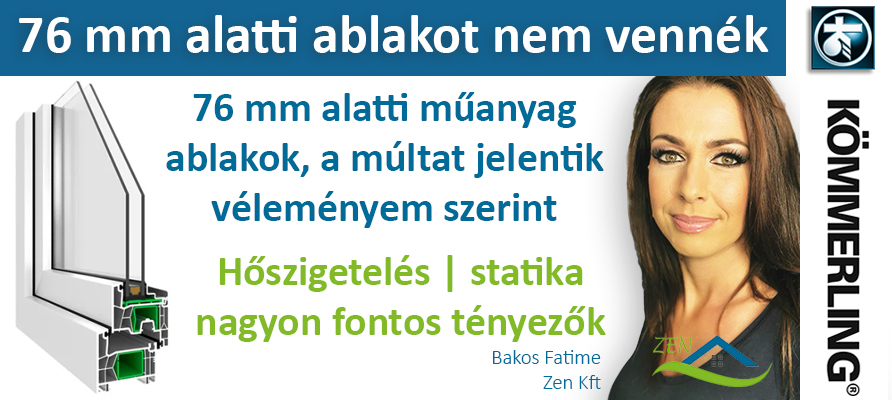 Műanyag alakok hazánkban már 70 mm beépítési mélységtől elérhetők. Többnyire 5 légkamrás ablakok ezek, de sajnos van belőle 6 és 7 légkamrás változat is. Érthetetlen állapot ez, de sajnos nem vagyunk nyugaton, ahol ezek a termékek már nem felújítási alapot képző ablakminőségek. Nem az ára miatt, mert nem olcsóbbak, mint a jobb minőségű ablak, hanem azért „mentek ki a divatból”, mert nem korszerű a statikájuk és a hőtechnikai adataik. Te pedig ezt a gyenge terméket akarod megvásárolni? Ismétlem magam, nem olcsóbb egy 70 mm széles ablak, mint pl. egy 76 mm széles műanyag nyílászáró. Ez a műanyag ablakpiac sajátossága. Trabant és Mercedes között van ár és minőségi különbség. Műanyag ablak esetén szinte csak minőségi különbség van. Lehet, hogy a Kömmerling AD76 – 5 légkamrás ablakot kedvezőbben adom neked, mint a 70-74 mm közti 5-7 légkamrás ablakot? Járj utána és a kérdés nem lesz költői.